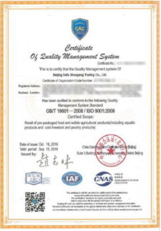 北京德發(fā)順鵬商貿(mào)有限公司成立于2014年9月,是一家私營(yíng)有限公司。公司經(jīng)營(yíng)范圍為:零售預(yù)包裝食品、食用農(nóng)產(chǎn)品等。前景一片大好,在全國(guó)各地市場(chǎng)中開(kāi)始嶄露頭角。目前公司主要業(yè)務(wù)為北京市各大酒店提供更加優(yōu)質(zhì)的食品,水產(chǎn)品及生鮮產(chǎn)品。 公司自運(yùn)作以來(lái),以溫馨舒適的工作環(huán)境、科學(xué)規(guī)范的管理制度、優(yōu)質(zhì)高效的服務(wù)理念,以適應(yīng)市場(chǎng)競(jìng)爭(zhēng)為導(dǎo)向,全面引進(jìn)現(xiàn)代企業(yè)管理機(jī)制,認(rèn)真規(guī)范企業(yè)內(nèi)部管理,以人為本,重視人才,充分發(fā)揮每個(gè)員工的優(yōu)勢(shì)特長(zhǎng),在銷售領(lǐng)域都取得了可觀的業(yè)績(jī)效益,增強(qiáng)了企業(yè)的綜合實(shí)力。 我公司作為廠家和消費(fèi)者中間的重要橋梁,本著“顧客至上,質(zhì)量可靠,優(yōu)質(zhì)服務(wù)”的原則,為生產(chǎn)者擴(kuò)大銷售范圍,為消費(fèi)者篩選優(yōu)質(zhì)產(chǎn)品,提高了銷售活動(dòng)的效率,分擔(dān)了廠家銷售環(huán)節(jié)的復(fù)雜工作,促進(jìn)了產(chǎn)品的大范圍銷售。此外,公司專業(yè)的銷售人才,熟悉食品銷售業(yè)務(wù)各環(huán)節(jié),隨著公司貿(mào)易規(guī)模的日益擴(kuò)大,目前正逐步向大型水產(chǎn)品等領(lǐng)域擴(kuò)展,以良好的信譽(yù)贏得了客戶的信賴,并加強(qiáng)與各大酒店的業(yè)務(wù)往來(lái)。 在今后五年里,公司將打造企業(yè)內(nèi)部業(yè)務(wù)流程信息化、現(xiàn)代化,建立更為系統(tǒng)、科學(xué)的管理制度,完善培訓(xùn)體系,培養(yǎng)出一批復(fù)合型人才。在不斷完善提升公司內(nèi)部管理能力的同時(shí),也將加快銷售業(yè)務(wù)的發(fā)展步伐,發(fā)展為外經(jīng)貿(mào)企業(yè)中的領(lǐng)航者。 該企業(yè)順利通過(guò)GB/T 19001-2008/ISO9001:2008認(rèn)證 |